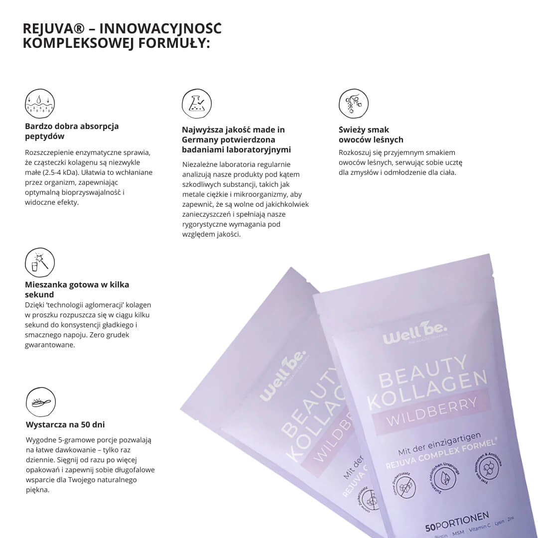 Dzięki swojej naturalnej strukturze kolagen wywiera istotny wpływ na elastyczność i napięcie skóry oraz tkanek. W połączeniu z innymi substancjami endogennymi kolagen pełni również ważne funkcje w układzie mięśniowo-szkieletowym oraz w integralności strukturalnej różnych narządów.